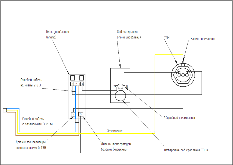 Схема подключения Контроллера-реле напряжения к внешнему источнику-ТЭН