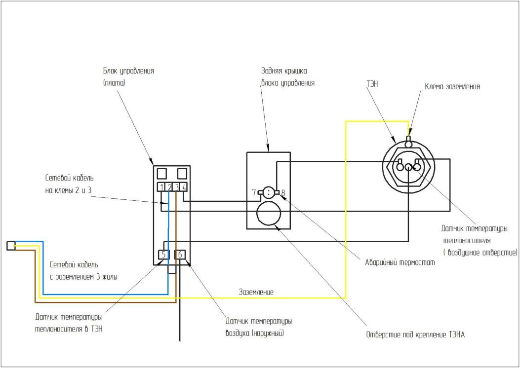 Схема подключения Блока управления Контроллера-реле температуры к ТЭНу